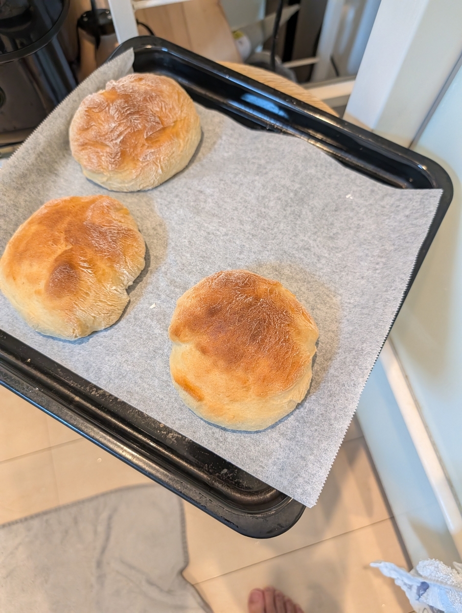 外側は固めだが中は柔らかい、(形の不細工さに目を瞑れば)良い感じのバンズになってくれた。